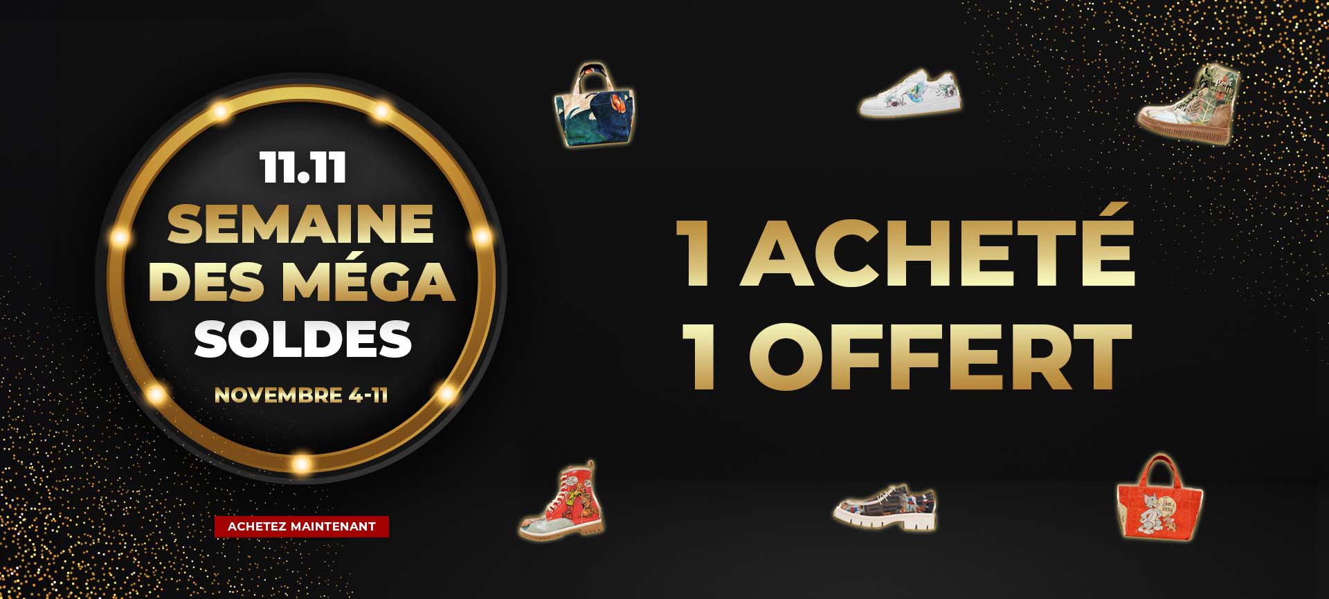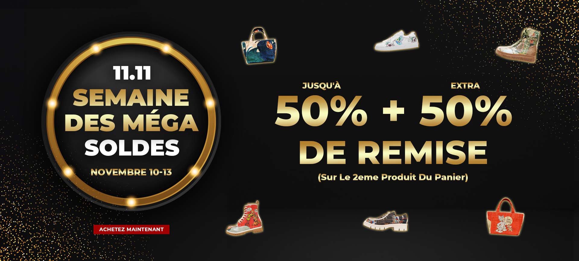 C’est une journée unique et spécial pour des personnalités diverses et exceptionnelles ! Vous aimez être différent et refléter votre style ? Ne manquez pas les produits spéciaux 11/11 de DOGO avec leurs différents modèles et leurs prix intéressants. Vous n’avez plus besoin d'attendre pour oser essayer quelque chose de nouveau. Si vous appréciez des thèmes ou des designs originaux pour refléter votre propre style, le style unique de DOGO peut être votre référence. Avec les produits DOGO, vous ne vous lasserez jamais. Ils sont créatifs et tendance plus que n’importe quel accessoire, chaussure ou sac. Ils permettent d'exprimer librement votre style et vos goûts et d'être original sans ressembler aux autres. Trouvez votre coup de cœur parmi les différents thèmes et designs parmi les bottes et chaussures de DOGO en promotion. Et pourquoi pas combiner vos chaussures ou bottes de DOGO avec des sacs ? Les sacs de DOGO du même style peuvent rendre l’occasion de la promo 11/11 encore plus spéciale pour vous. La semaine du 11/11, c’est la fête du shopping ! C'est aussi la journée du self-love. Faites-vous plaisir avec les chaussures ou sacs DOGO aux designs créatifs, originaux et funny ! DOGOSTORE célèbre le festival mondial du shopping du 11/11 avec des prix avantageux.