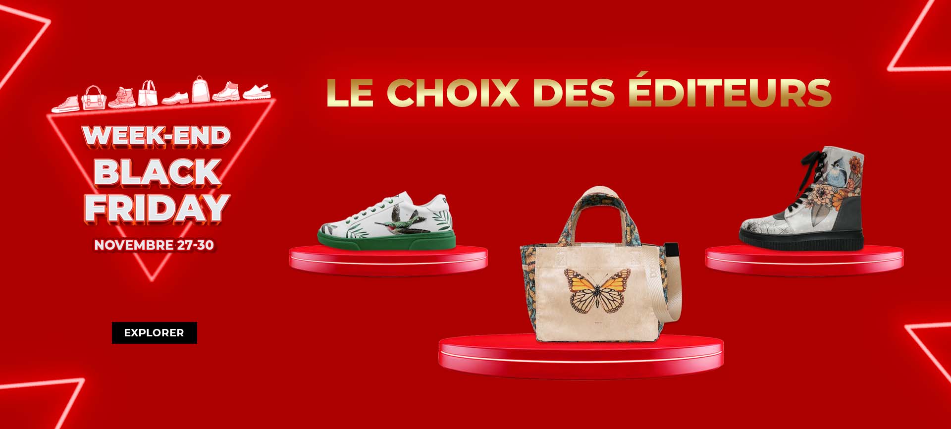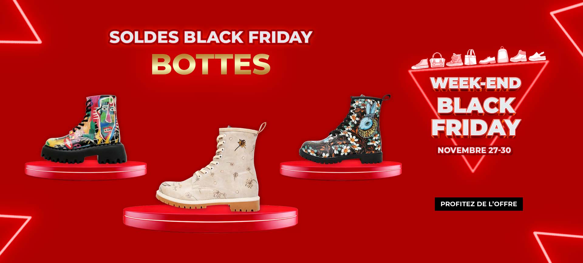 Nous sommes en novembre et le temps commence à se refroidir, mais c’est toujours le printemps ou l'été à l'intérieur de vous, votre énergie est toujours élevée et vous voulez que les gens autour de vous le remarquent. Si vous recherchez des chaussures et sacs à assortir avec vos tenues colorées, vous pouvez être sûr que DOGOSTORE vous en propose beaucoup. DOGOSTORE se fait remarquer notamment par l'utilisation de couleurs vives dans ses designs et a pour objectif de partager ces couleurs avec vous lors des meilleures remises du Black Friday. Choisissez les chaussures, bottes ou sacs qui vous plaisent parmi les offres spéciales Black Friday et DOGOSTORE les livre à votre porte après votre achat en ligne Black Friday!
