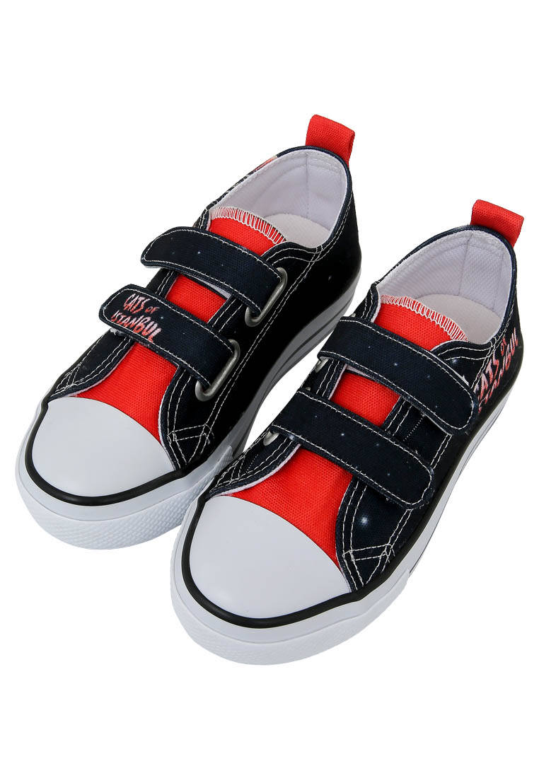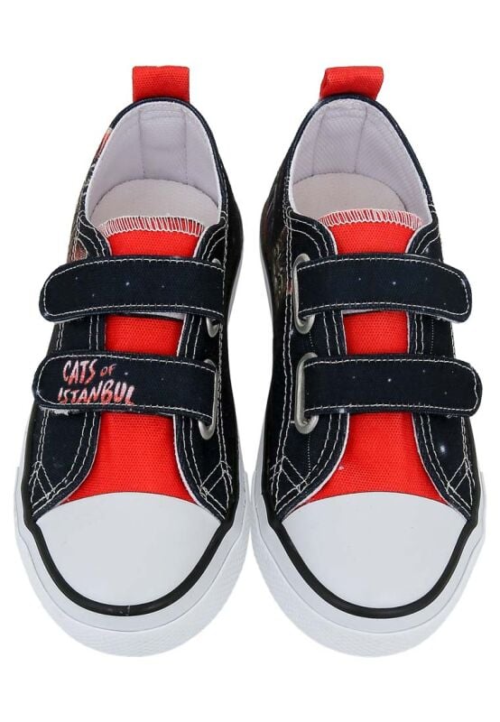 Unisex Çocuk Vegan Işıklı Cırt Cırtlı Siyah Sneakers - Paws on Taksim Tasarım
