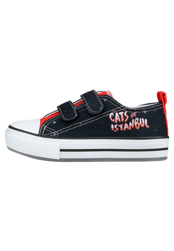 Unisex Çocuk Vegan Cırt Cırtlı Siyah Sneakers - Paws on Taksim Tasarım