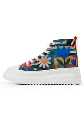 Femme Vegan Multicolore Baskets Montantes à Plateforme - Blossom Hug Motif