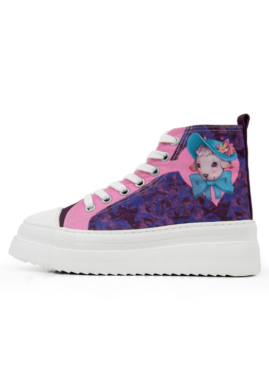 Femme Vegan Multicolore Baskets Montantes à Plateforme - Lady Fluff Motif