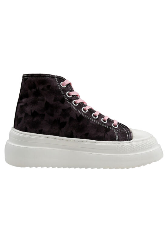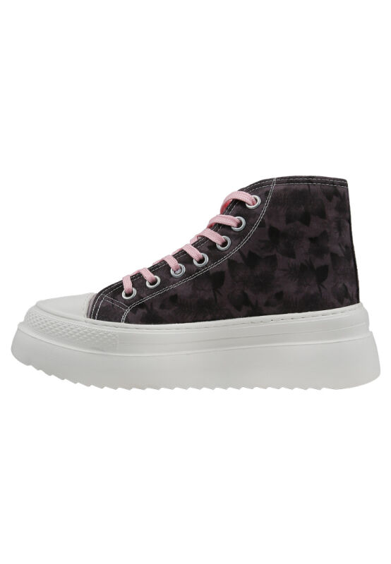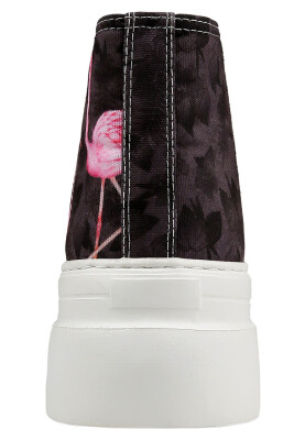 Femme Vegan Brun Baskets Montantes à Plateforme - Brown Tropical Motif