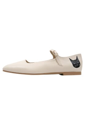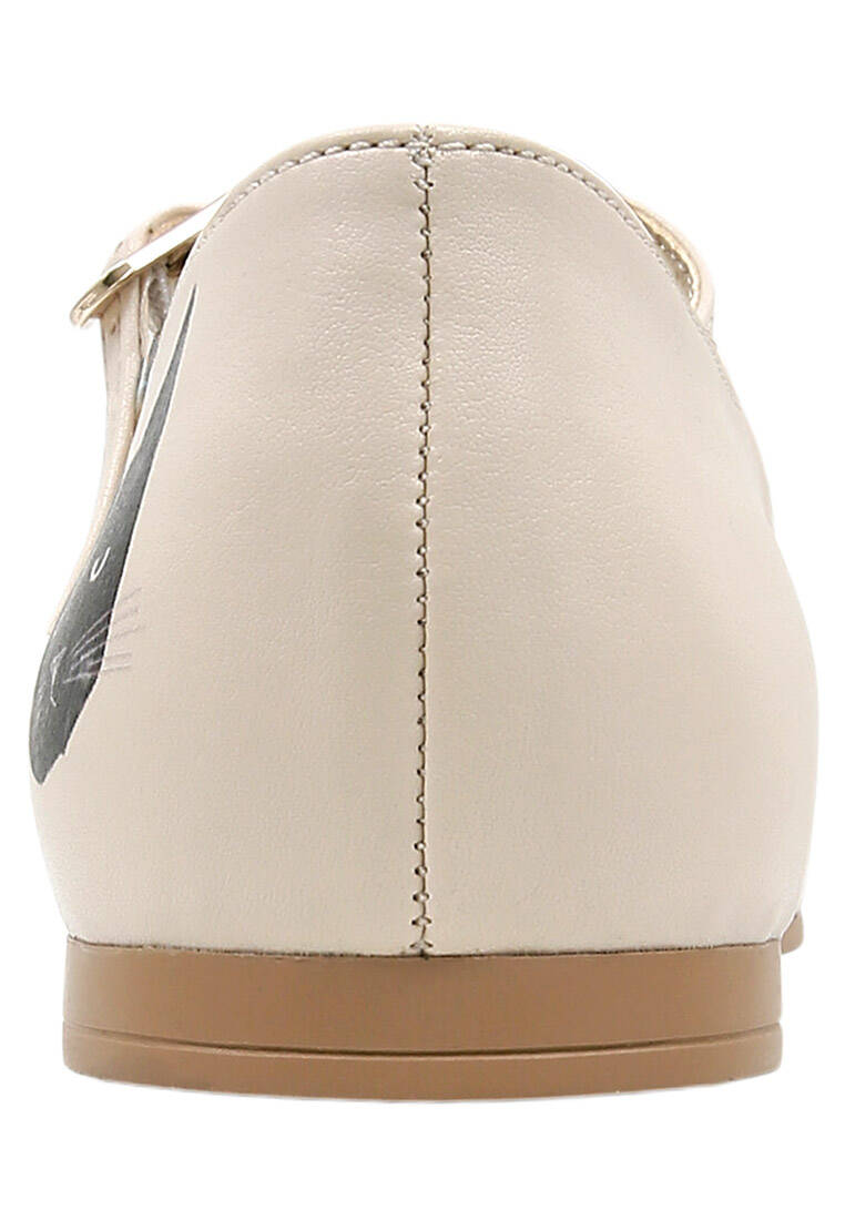 Femme Cuir Vegan Beige Chaussures Plates - Whiskers and Purrs Motif