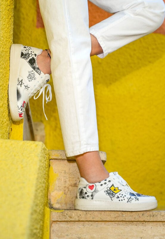 Marchez dans le style ! Les baskets blanches vegan en cuir pour femmes – Design Icon, un modèle Dice Sneakers, offrent un confort maximal avec leur semelle souple et leur construction 100 % vegan. Grâce à leur design éco-responsable, elles s'intègrent parfaitement à toutes les tenues avec des détails de baskets remarquables. Élevez votre élégance quotidienne ou faites un geste stylé avec des baskets-cadeaux pour vos proches ! Le Design Icon est la clé du style intemporel !