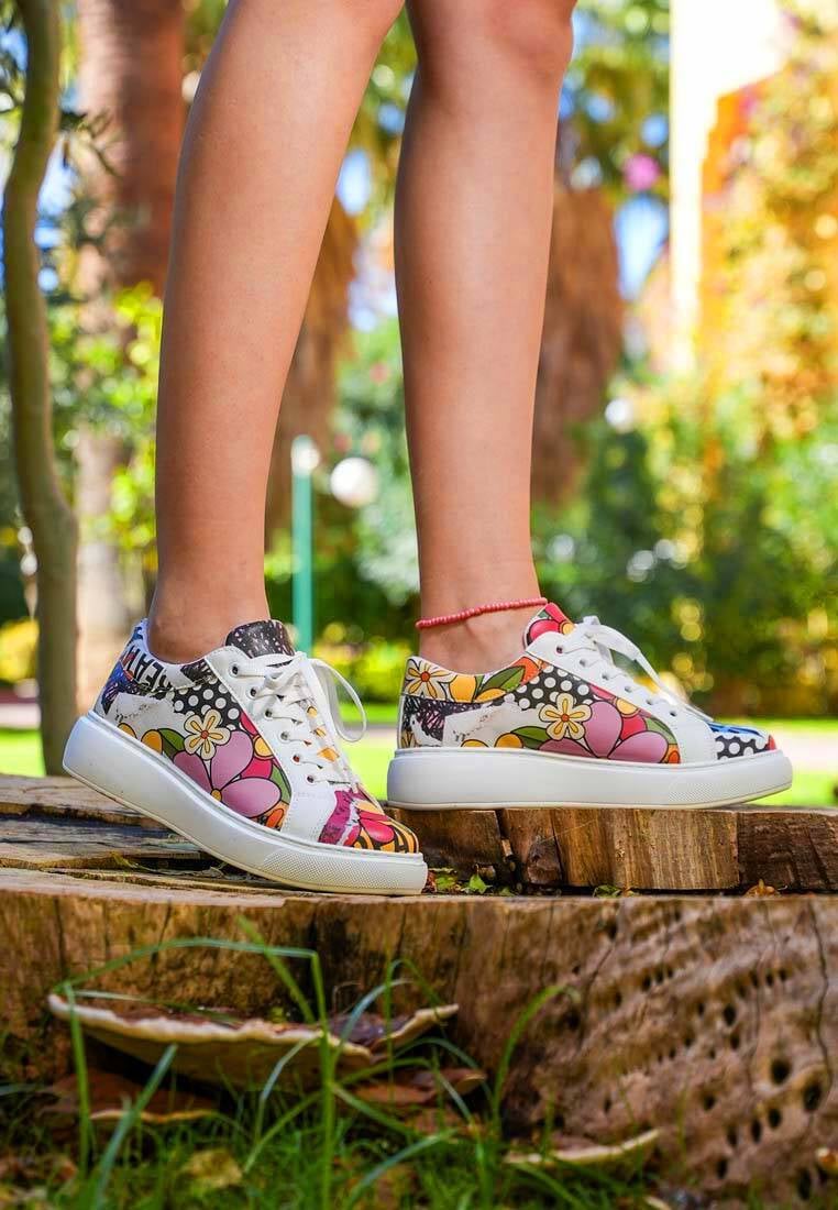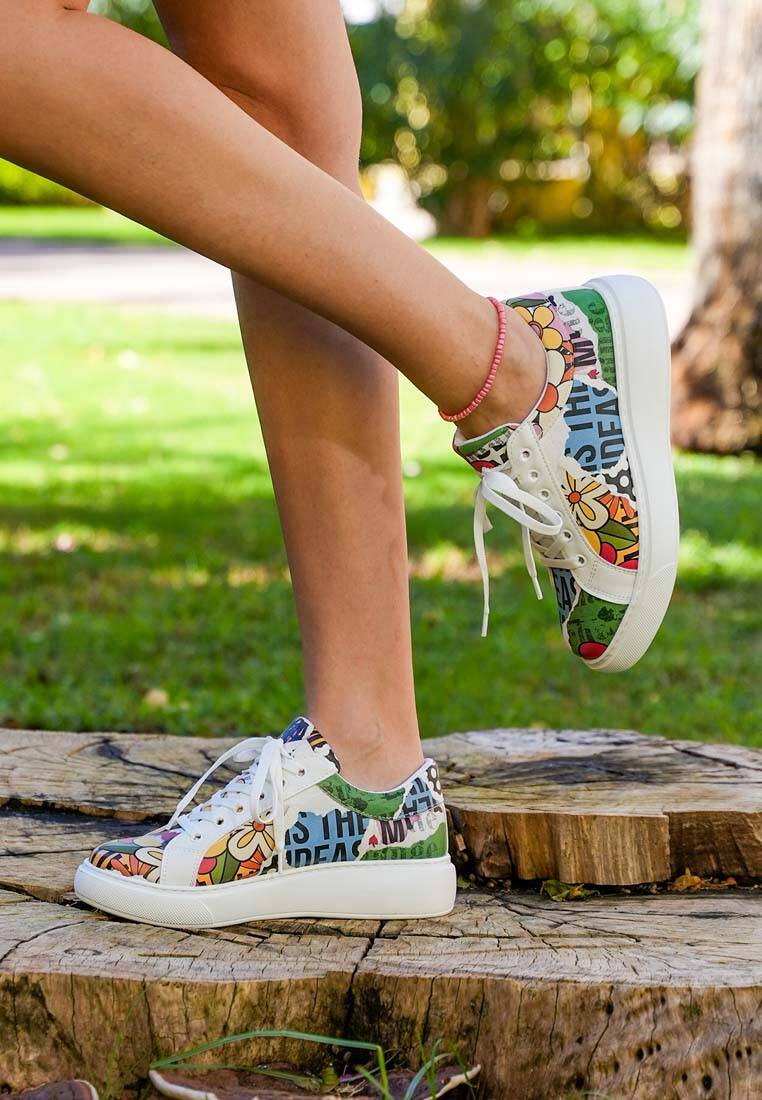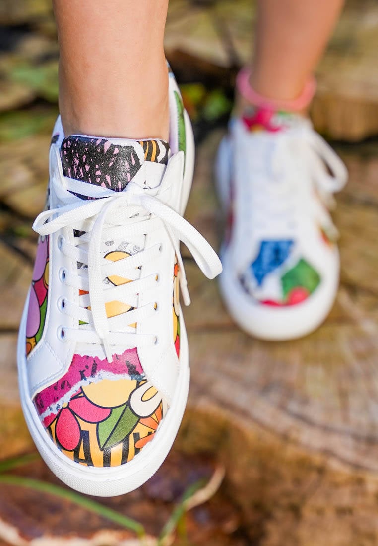 Libérez votre créativité ! Les baskets blanches vegan en cuir pour femmes – Design Creative Mess offrent un confort supérieur grâce à leur semelle plateforme tout en apportant une touche dynamique à votre style avec leurs audacieux détails de design. En tant que baskets 100 % vegan, elles sont un choix éco-responsable et tendance. Choisissez-les pour vous-même et laissez briller votre style librement, ou faites une surprise excitante pour un proche avec ces baskets-cadeau ! Creative Mess est là pour libérer votre style !
