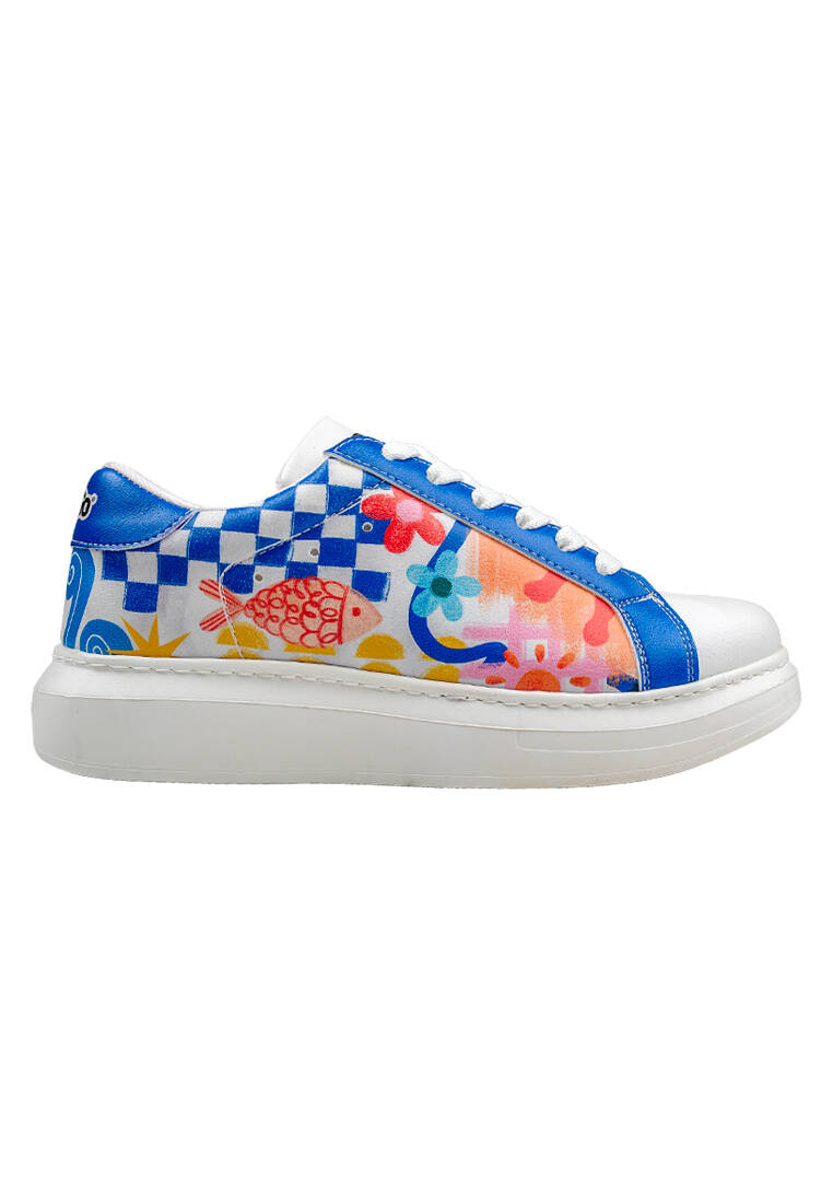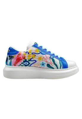 Femme Cuir Vegan Blanc Baskets - Azur Motif