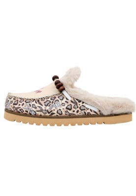 Les chaussons crème doublés en peluche en cuir végan pour femme – Warner Bros Leopard Bugs Bunny Design associent des détails ludiques à une silhouette moderne pour un style élégant et confortable. L’extérieur en cuir végan crème et la doublure douce en peluche offrent chaleur et bien-être lors des journées fraîches, tandis que la semelle épaisse assure un soutien équilibré tout au long de la journée. Confectionnés en cuir végan 100 %, ils reflètent une approche respectueuse des animaux et de l’environnement. Ornés de motifs léopard et de détails Bugs Bunny, ces chaussons sont parfaits pour un usage intérieur comme pour des tenues décontractées du quotidien.