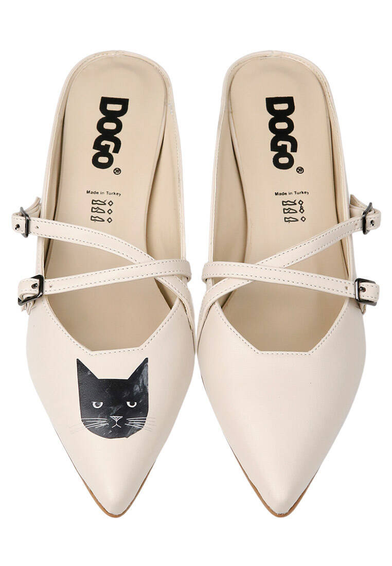 Femme Cuir Vegan Crème Sandales à Talon - Whiskers and Purrs Motif