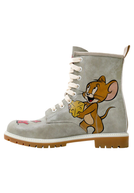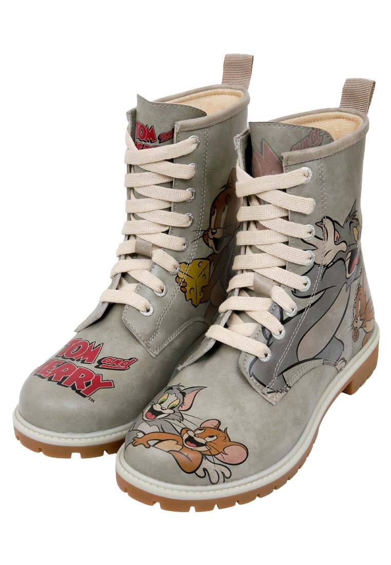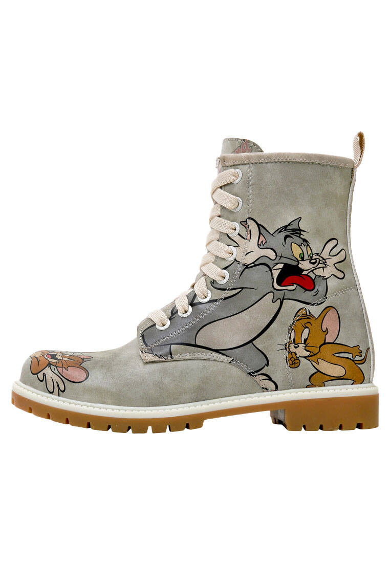 Femme Cuir Vegan Gris Bottes Longues - Warner Bros Looney Tunes Tom ve Jerry Tiny Trouble Motif