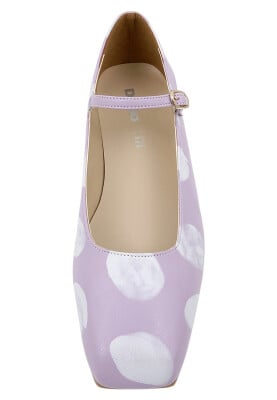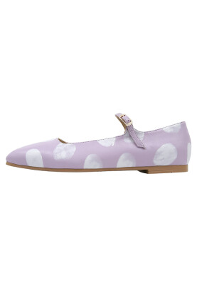 Femme Cuir Vegan Lilas Chaussures Plates - Brush Dots White Motif