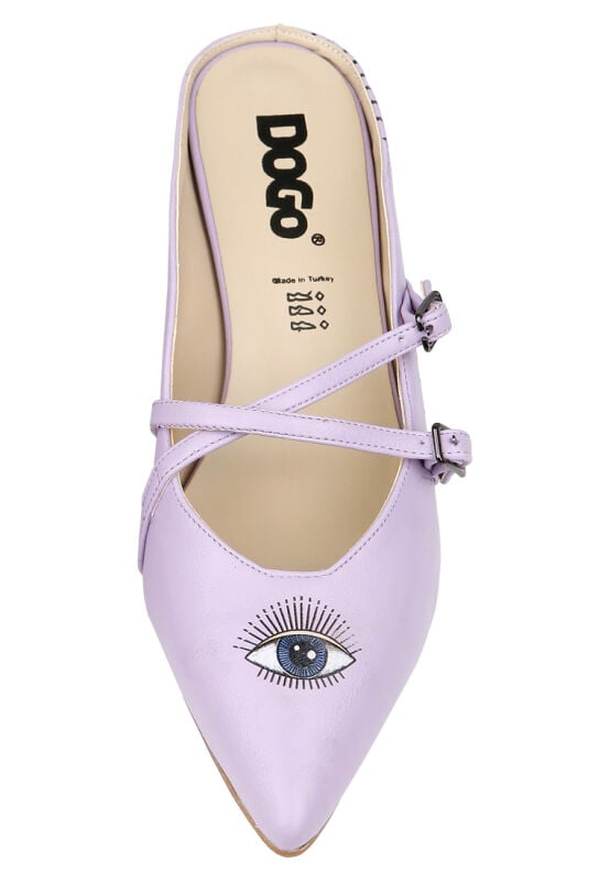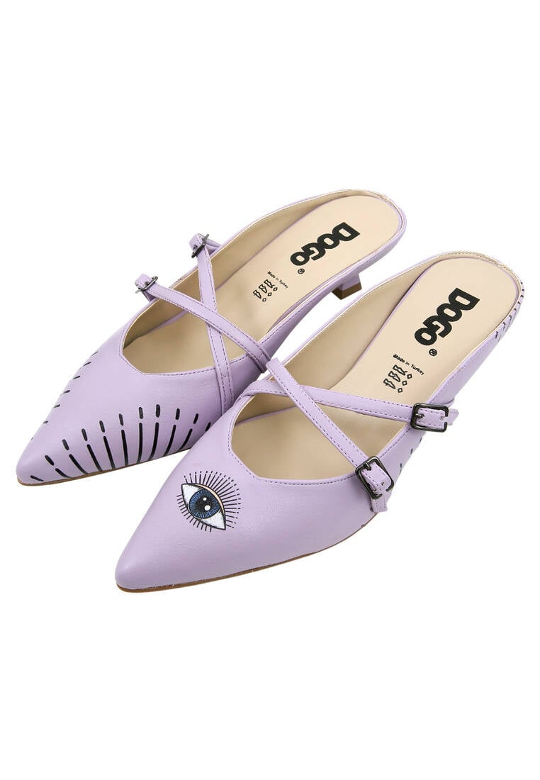 Adoptez une élégance subtile avec les sandales à talons Kitty en lilas. Ces chaussures véganes, ornées du design minimaliste "Open Your Eyes" avec un charmant motif œil, sont parfaitement conçues pour les femmes. Leurs talons courts assurent un confort optimal sans compromettre le style.