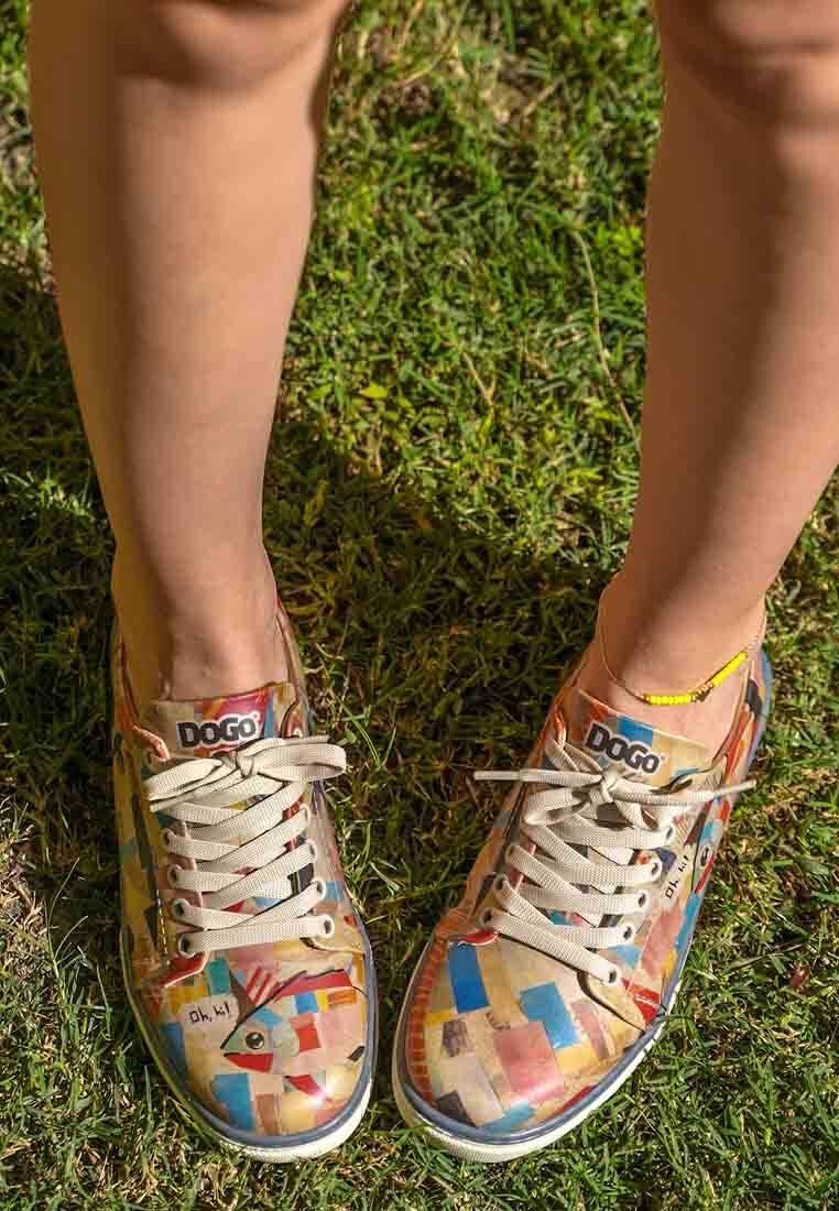 Sentez la liberté à chaque pas ! Baskets multicolores pour femme en cuir vegan – modèle Hi Fish Design marient matériaux 100 % vegan et design éco-responsable, pour un style affirmé et engagé. Avec leur semelle confortable, ces baskets design offrent un bien-être constant, que vous soyez en pleine routine, en bord de mer ou en escapade. Offrez-vous une touche d’originalité ou faites plaisir avec ces sneakers idée cadeau inoubliable !