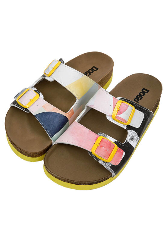 Confort et style réunis ! Sandales multicolores pour femme en cuir vegan – modèle Geometric Shapes Design, version Stella, sont fabriquées dans une structure 100 % vegan et éco-responsable, chaque pas devient ainsi une déclaration de mode consciente. Leur semelle douce garantit un confort longue durée, tandis que le design à double bride ajoute une touche moderne et unique. Parfaites aussi bien pour vos tenues quotidiennes que pour vos looks de vacances ! À s’offrir ou à offrir avec style !