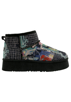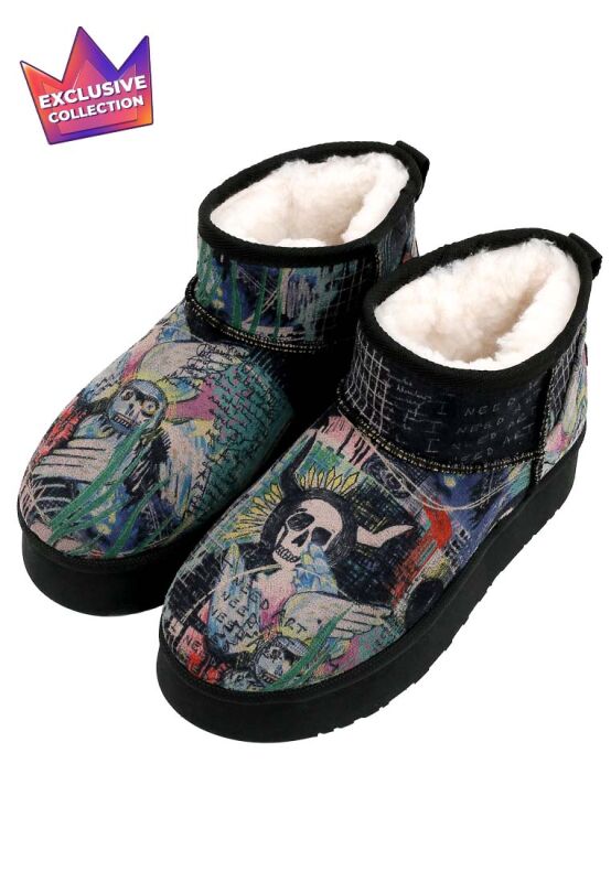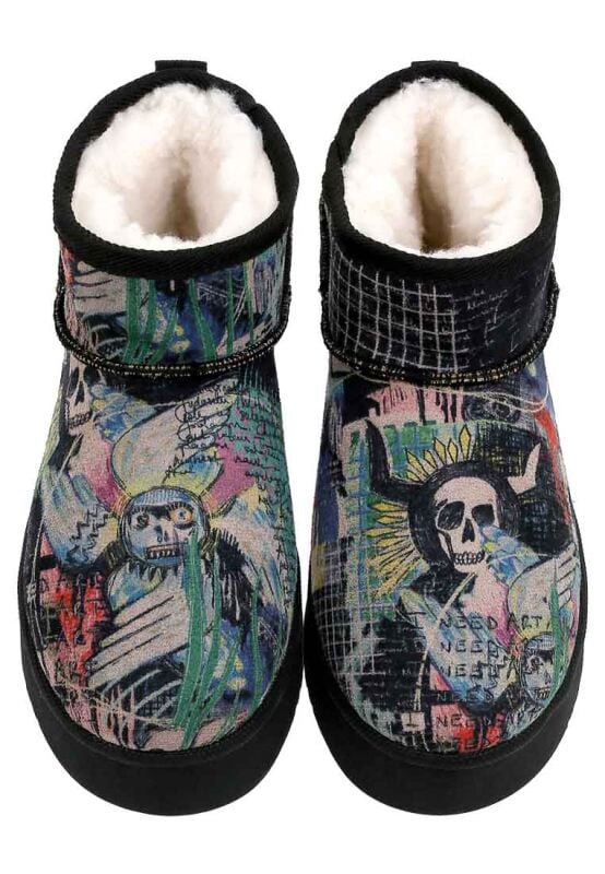 Femme Cuir Vegan Noir Bottines Doublées en Peluche - I Need Art Motif