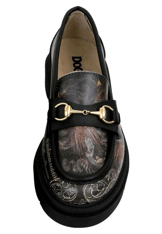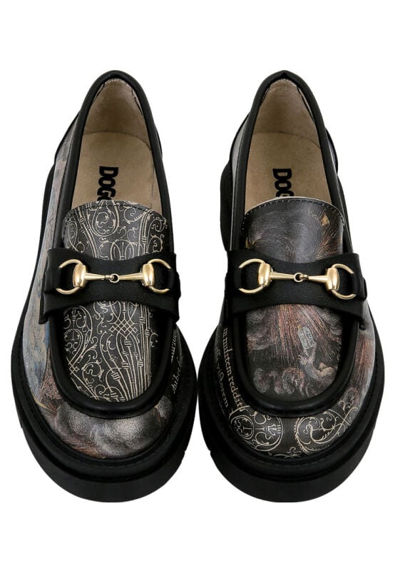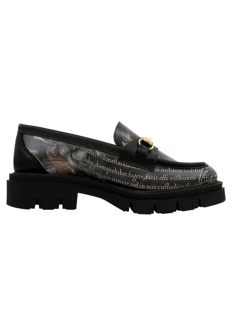 Femme Cuir Vegan Noir Mocassins - The Model Book Of Calligraphy Motif