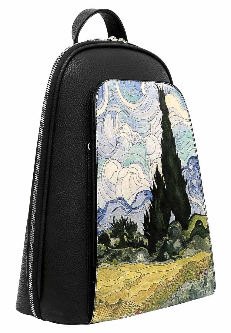 Femme Cuir Vegan Noir Sac à dos - Vincent van Gogh A Wheat Field with Cypresses Motif