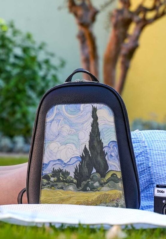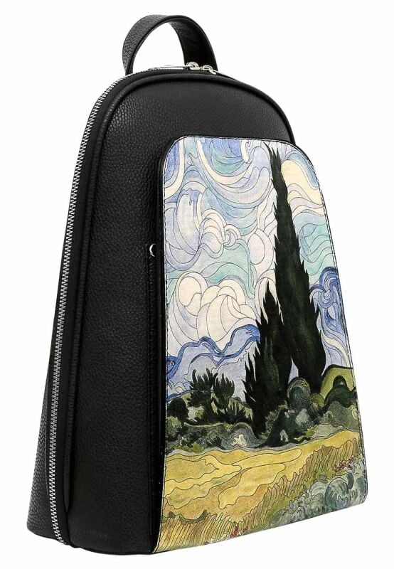 Libérez l’art sur vos épaules ! Sac à dos noir pour femme en cuir vegan – modèle Vincent van Gogh A Wheat Field with Cypresses associe une œuvre emblématique à un style sans effort, pour un sac à dos à la fois léger et tendance. Conçu en cuir 100 % vegan et éco-responsable, il vous permet d’afficher vos valeurs tout en restant stylée. Pour le quotidien ou les voyages, ce sac inspiré de l’art ajoute une touche créative à votre look. Pour vous-même ou à offrir comme cadeau artistique inoubliable !