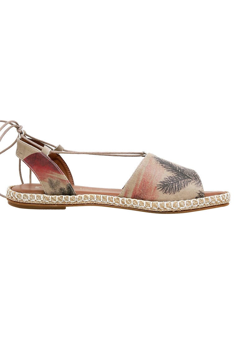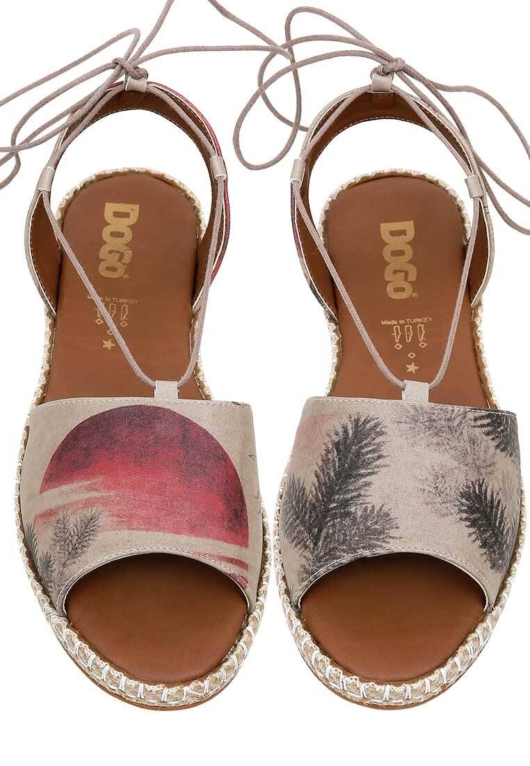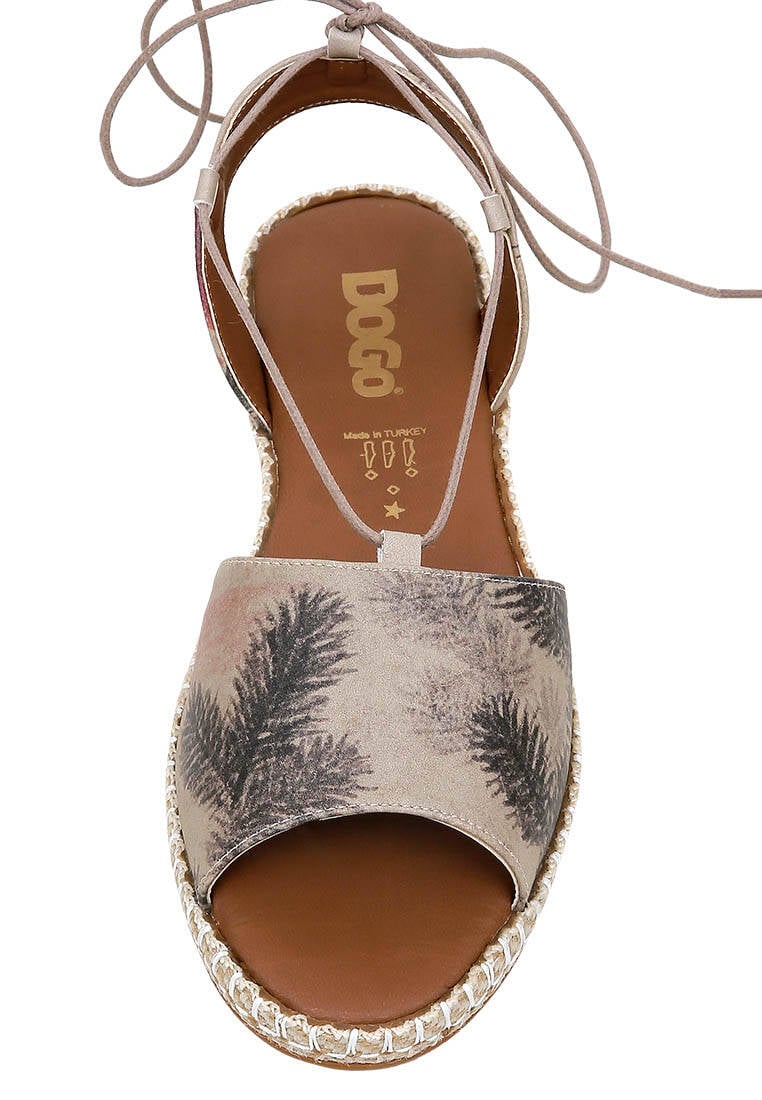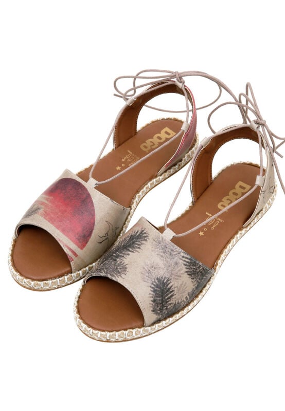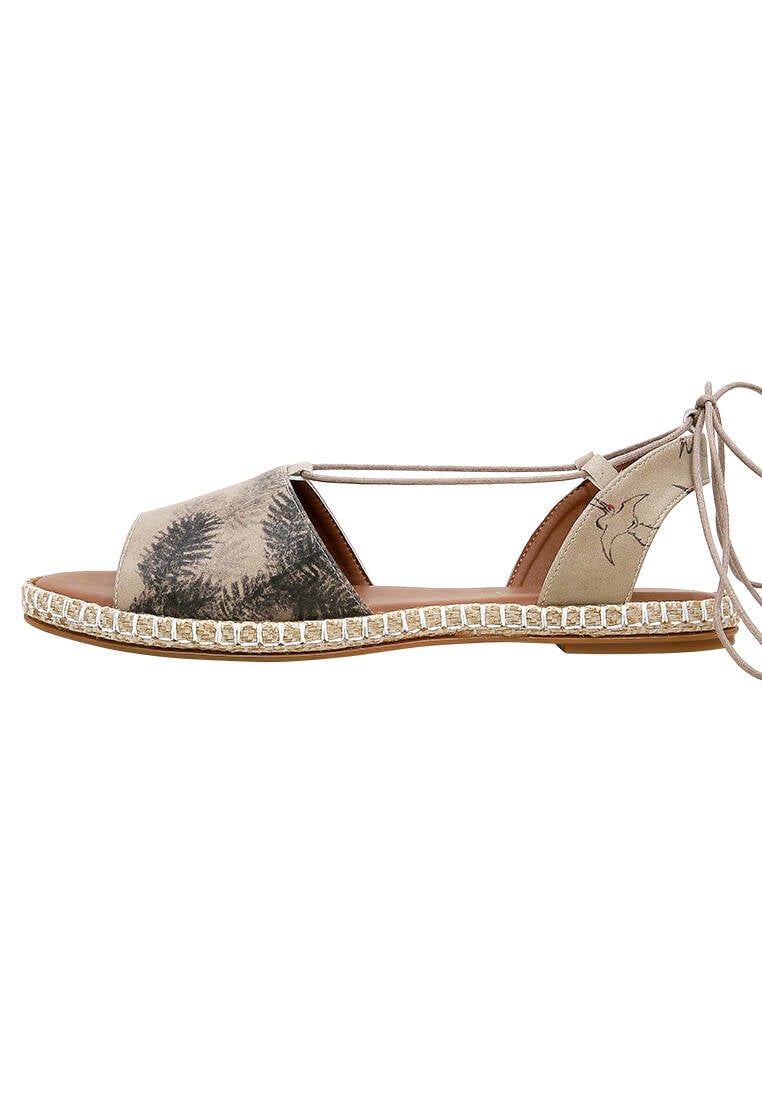 Femme Cuir Vegan Beige Sandales à Lacets - Stork in the Flight Motif