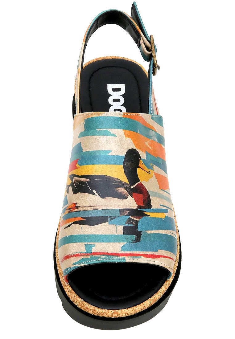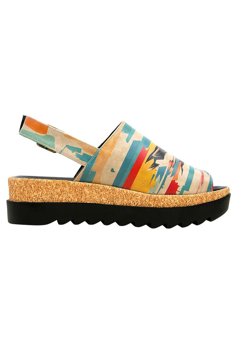 Femme Cuir Vegan Multicolore Sandales Compensées - Goose Bumps Motif