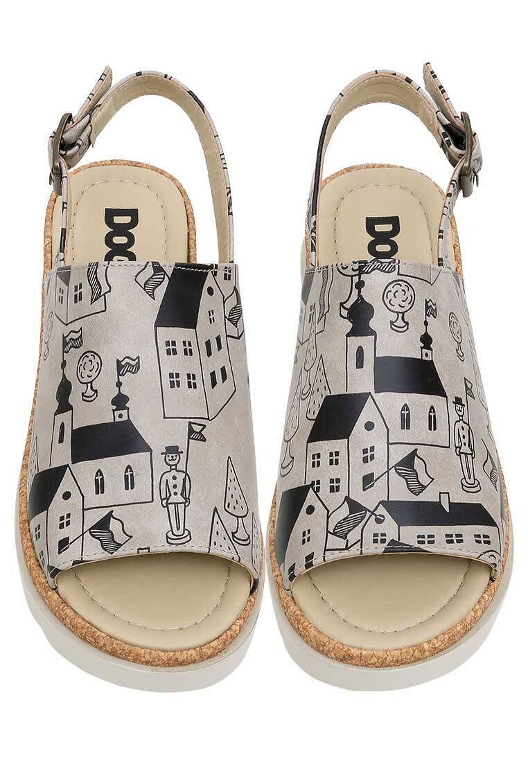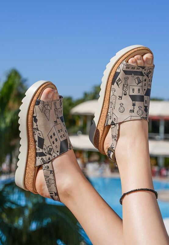 Confortable, colorée et unique ! Les sandales à talon compensé beiges vegan en cuir pour femmes – Design Toy Houses, un modèle Gigi, allient le confort quotidien des sandales avec des détails sport-chic. Avec leur construction éco-responsable, elles sont un choix tendance et respectueux de la planète, tandis que leur semelle épaisse assure un confort toute la journée. Ajoutez une touche de couleur à vos pas ! Choisissez-les pour vous-même ou surprenez vos proches avec ces sandales idée cadeau pleines d'énergie !