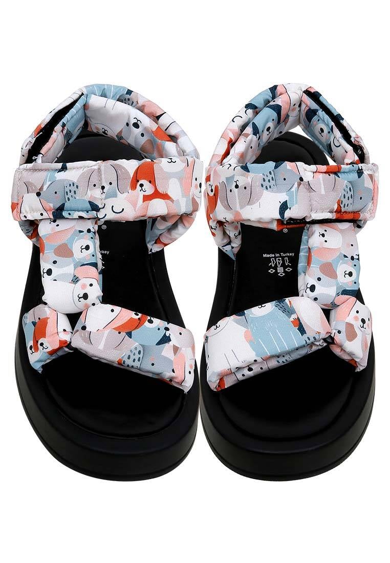 Femme Cuir Vegan Multicolore Sandales Compensées - Puppy Eyes Motif