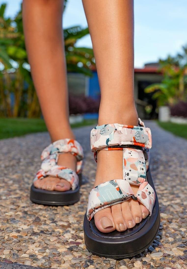 Démarquez-vous avec votre style ! Sandales compensées en cuir végan multicolore pour femmes – Design Puppy Eyes, modèle Mellow, enveloppent vos pieds avec son design de brides sécurisées, tandis que la semelle épaisse assure un confort tout au long de la journée. En tant que sandales 100 % végan, elles font une déclaration éco-responsable tout en vous permettant d’exprimer votre style avec une mode audacieuse mais confortable. Élevez votre énergie avec un look audacieux et stylé !