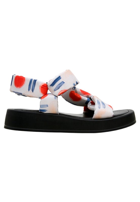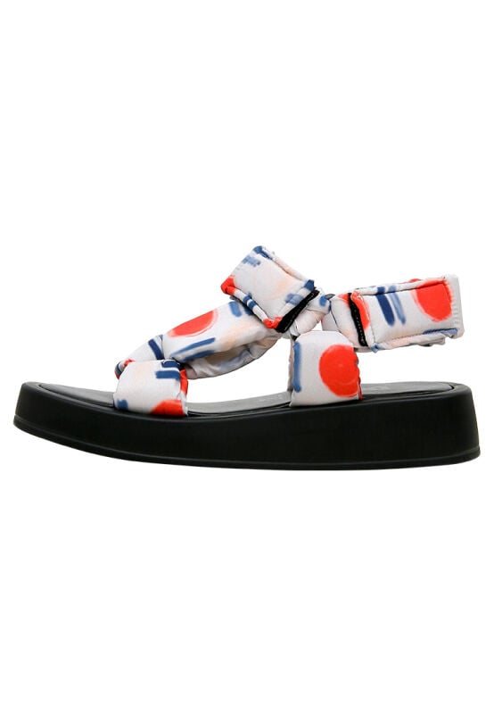 Boostez votre énergie, laissez briller votre style ! Sandales compensées en cuir végan blanc pour femmes – Design Red Fish Blue Fish, modèle Mellow, dispose d'un design de brides ajustables pour un ajustement parfait, tandis que sa semelle épaisse apporte un confort supplémentaire. En tant que sandales 100% végan, c’est un choix durable et stylé, avec des dessins audacieux qui font une déclaration. L'indispensable de cet été est ici ! Démarquez-vous avec des pas uniques et confortables !