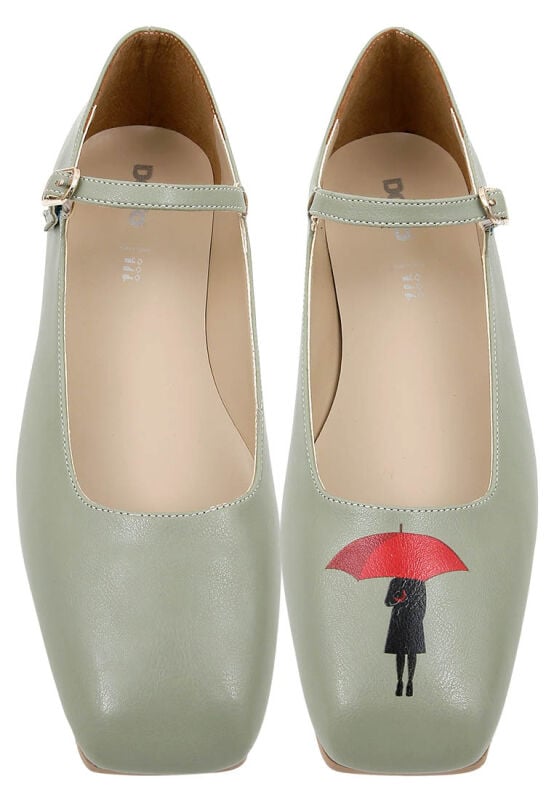 Femme Cuir Vegan Vert Chaussures Plates - Under My Umbrella Motif