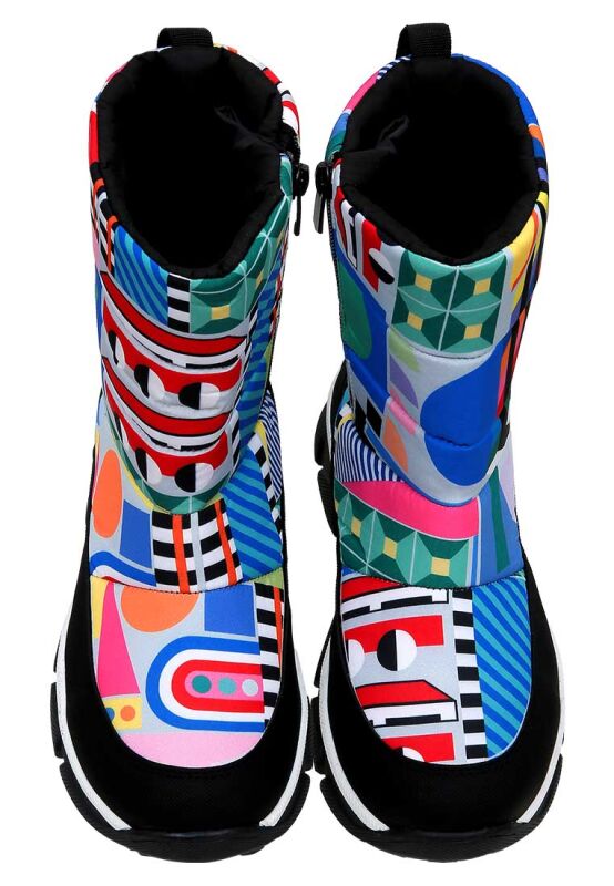 Adoptez un style hivernal unique avec les bottes vegan multicolores pour femme au motif géométrique. Conçues pour allier élégance et confort, ces bottes se démarquent par leur design moderne et audacieux. Les motifs géométriques multicolores apportent une touche de dynamisme à votre garde-robe d'hiver, tout en offrant une excellente performance dans les conditions froides. Légères et agréables à porter, elles conviennent aussi bien aux balades en ville qu'aux escapades enneigées. Faites de ces bottes un incontournable de votre saison hivernale et affirmez votre style avec originalité !