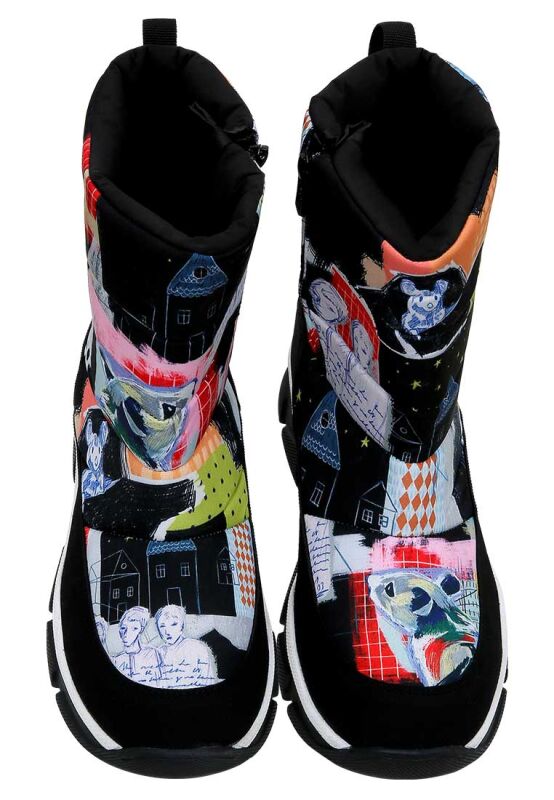 Apportez une touche de fantaisie à votre style hivernal avec les bottes vegan multicolores pour femme au motif "The Nice Mice". Ce modèle unique se distingue par ses couleurs vives et son design ludique, idéal pour celles qui aiment allier confort et originalité. Avec le motif "The Nice Mice", chaque pas devient une affirmation de style et de bonne humeur. Adoptez ces bottes pour un hiver chaleureux et joyeux !