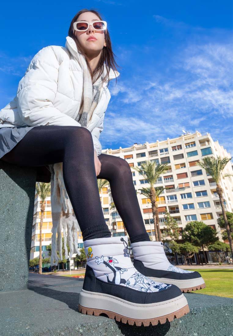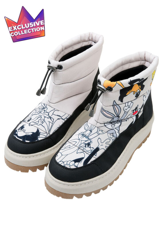 Femme Vegan Crème Bottes Longues - Looney Tunes Chasing Tunes Motif