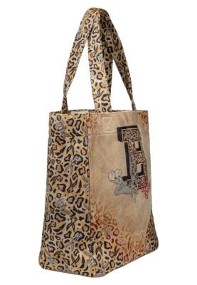 Femme Vegan Crème Léopard Large Tote Bag - Warner Bros Looney Tunes Leopard Bugs Bunny Motif