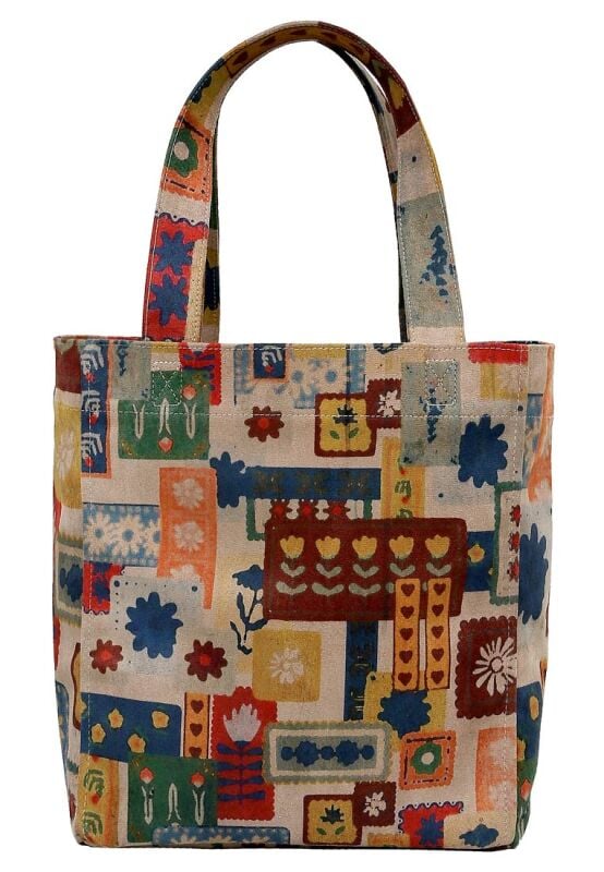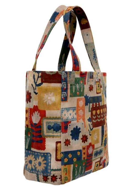 Femme Vegan Multicolore Large Tote Bag - Anatolian Patterns Motif
