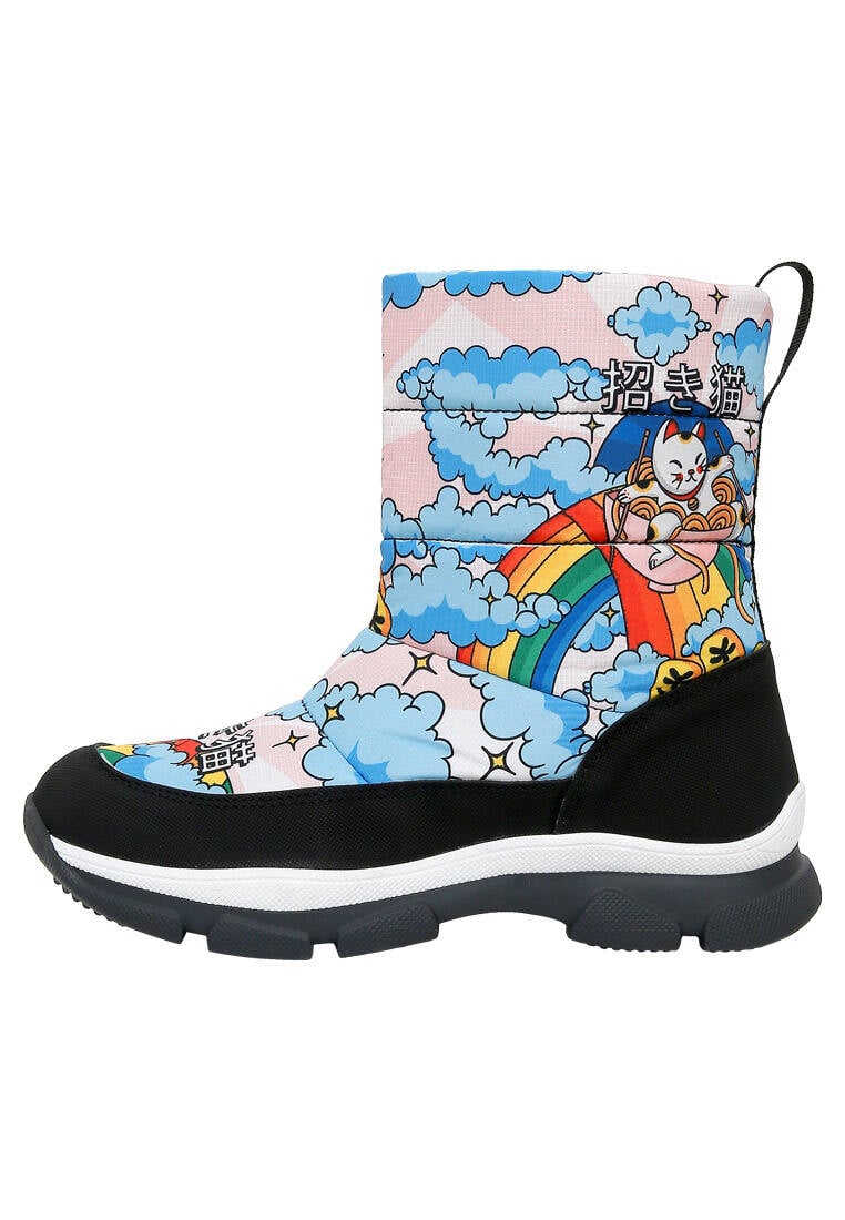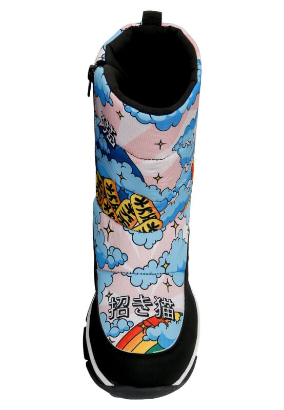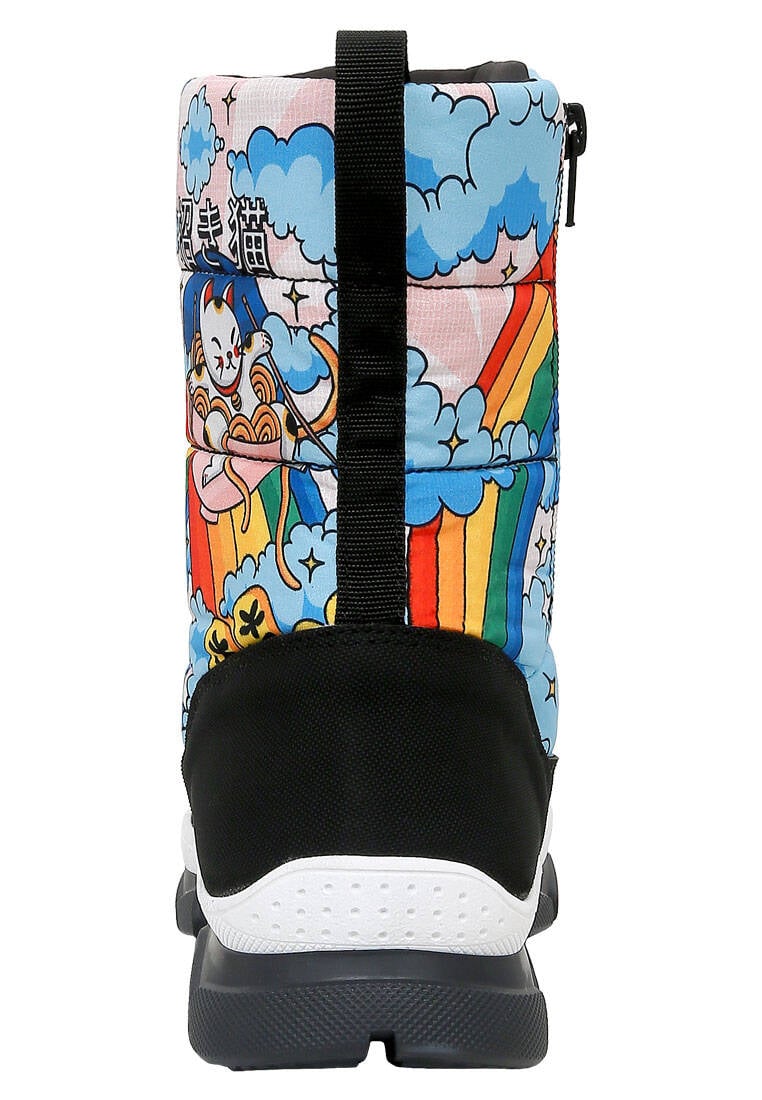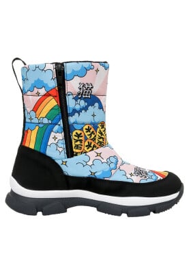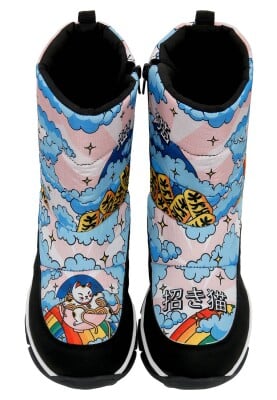 The Lucky Cat Tasarım Kadın Vegan Çok Renkli Bot, enerjik renkleri ve sevimli detaylarıyla kış günlerine neşe katar. DOGO’nun sanatı giyilebilir hale getiren özgün yaklaşımını yansıtan bu kadın botu, yüksek kaliteli yapısı sayesinde hem dayanıklılık hem konfor sunar. Soğuk havalarda sıcak tutan iç astarıyla fonksiyonel bir kullanım sağlar. Şehirde veya doğada fark yaratmak isteyenler için ideal olan bu çok renkli bot, modern çizgileriyle dikkat çeker. %100 hayvan dostu üretimiyle etik modayı destekleyen The Lucky Cat vegan bot, her adımda sıcaklık, stil ve özgünlük hissi yaşatır.