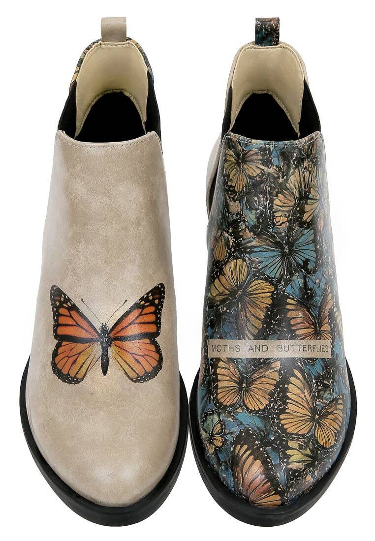 Kadın Vegan Deri Bej Bilekte Bot - Moths and Butterflies Tasarım