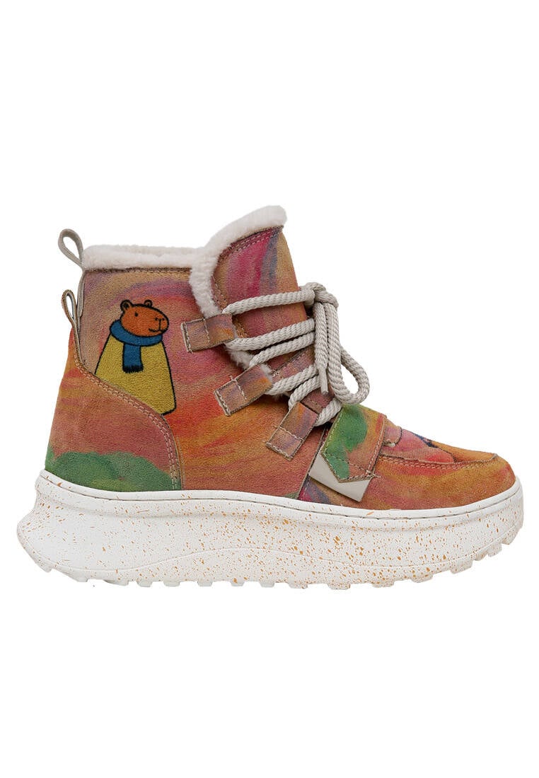Capybara Tasarım Kadın Vegan Bot, sade şıklığı ve zarif detaylarıyla şehir stiline doğal bir zarafet kazandırır. DOGO’nun sanatı giyilebilir hale getiren özgün anlayışını yansıtan bu tasarım bot, yüksek kaliteli vegan yapısı sayesinde dayanıklılık ve konforu bir arada sunar. Şık kadın bot formuna modern bir yorum katan bu model, kış aylarında sıcak ve stil sahibi bir görünüm sağlar. Günlük kombinlerden özel anlara kadar her tarza uyum gösteren bu kadın kışlık bot, %100 hayvan dostu üretimiyle etik modayı destekler. Capybara vegan ayakkabı, zarafet ve doğallığın mükemmel birleşimidir.