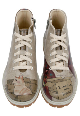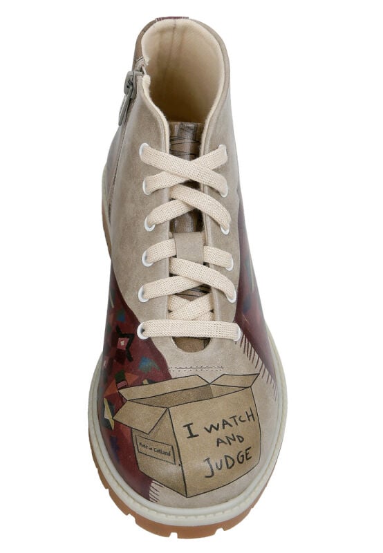 Kadın Vegan Deri Bej Fermuarlı Kısa Bot - I Watch and Judge Tasarım