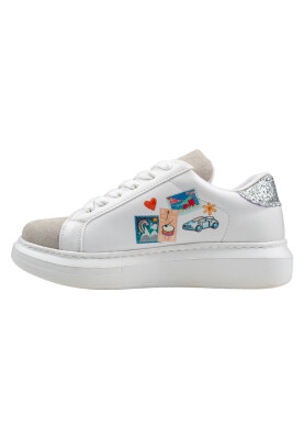 Kadın Vegan Deri Beyaz Sneakers - Travel Collage Tasarım