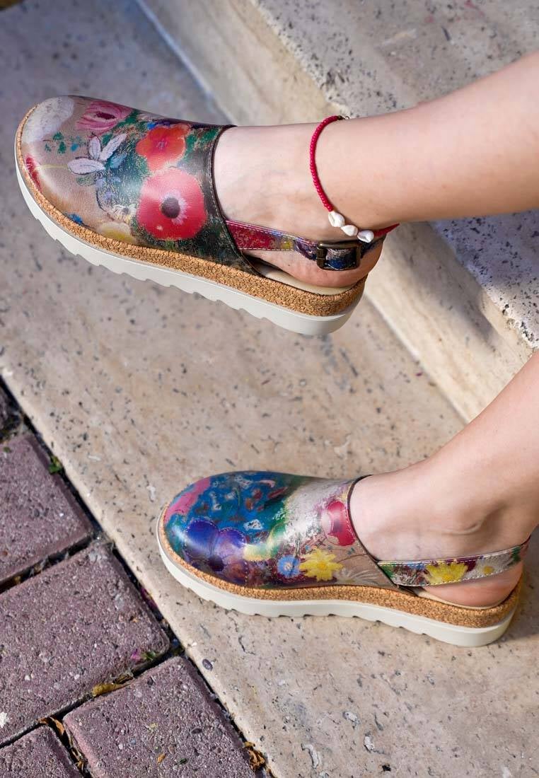 Kadın Vegan Deri Çok Renkli Kalın Taban Sandalet - Full of Hope Tasarım
