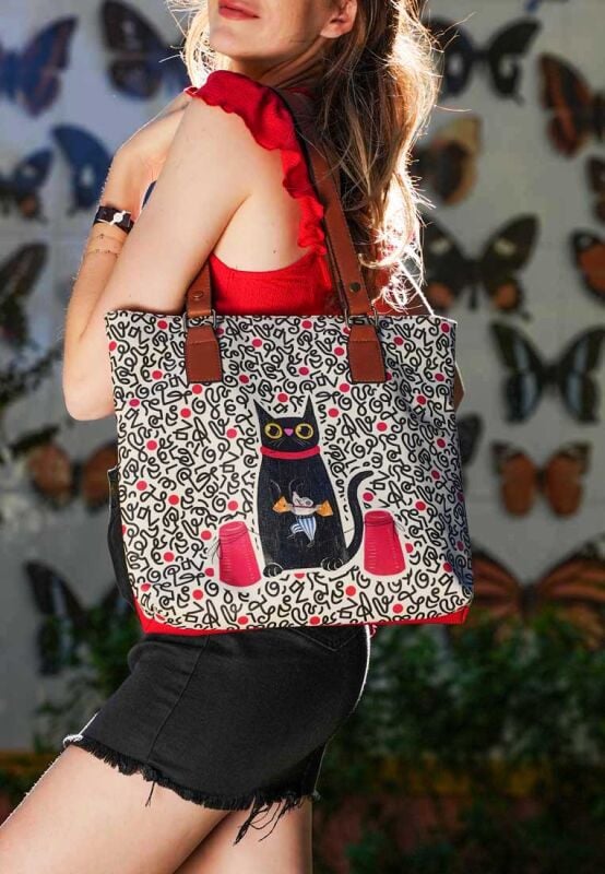 Eğlenceli tasarım, maksimum konfor! Kadın Vegan Deri Kırmızı Omuz Çantası – Cat and Mouse Tasarım, cepli çanta yapısıyla pratiklik sunarken, fermuarlı çanta detayıyla güvenliği artırıyor. Büyük çanta kullanımıyla şehirde, tatilde her yerde seninle! Multi Pocket Bag modeli, %100 vegan çanta oluşuyla da stiline ve bilinçli tercihlerine hitap ediyor. Şıklık ve kullanışlılık bir arada! Kendin için al ya da hediye çanta seçeneğiyle sevdiklerine özel bir tasarım çanta sürprizi yap.