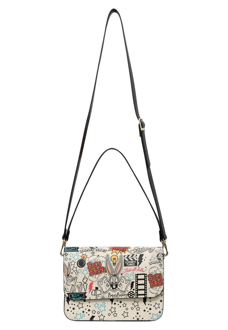 Kadın Vegan Deri Krem El Çantası - Warner Bros What's Up Doc? Bugs Bunny Tasarım