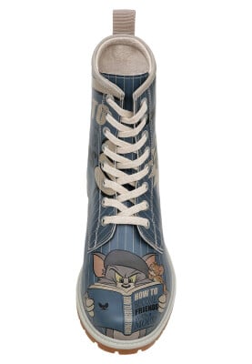 Kadın Vegan Deri Mavi Uzun Bot - Warner Bros Tom ve Jerry Friends-with-a-Mouse Tasarım