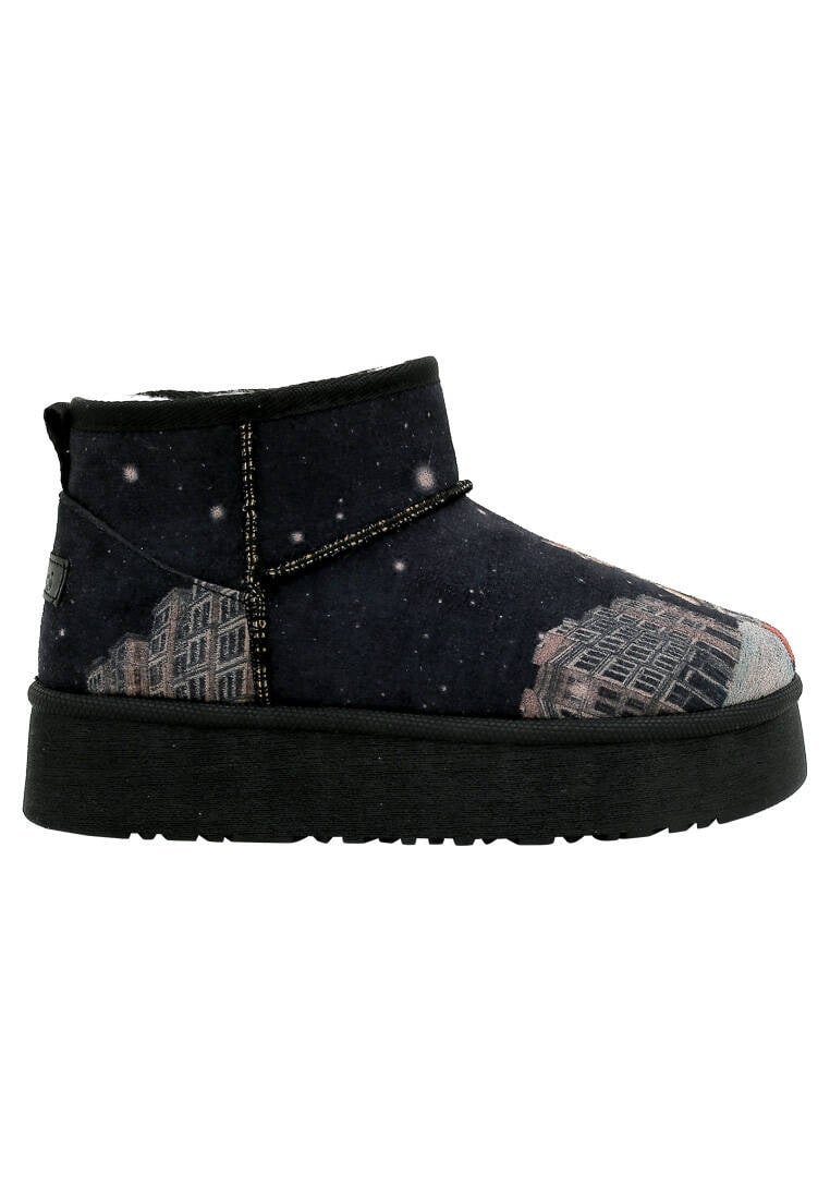 Kadın Vegan Deri Siyah İçi Peluş Bilekte Bot - Paws on Taksim Tasarım