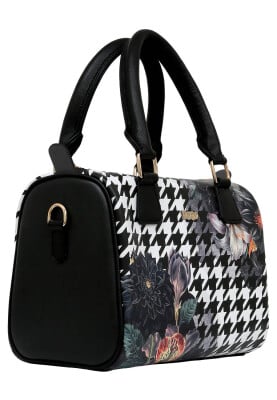 Kadın Vegan Deri Siyah El Çantası - Black Majestic Garden Tasarım