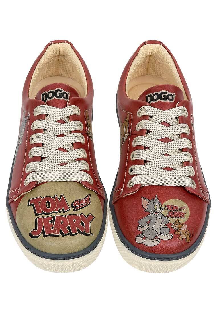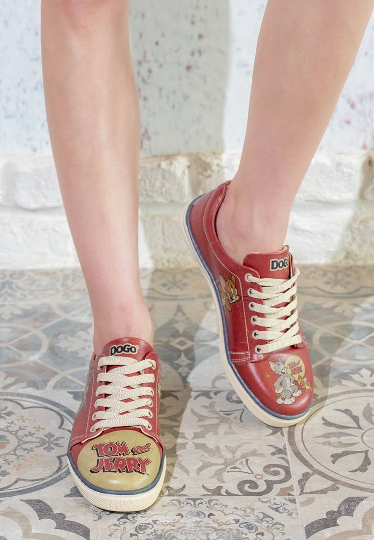 Kadın Vegan Deri Turuncu Sneakers - Warner Bros Tom ve Jerry Tasarım