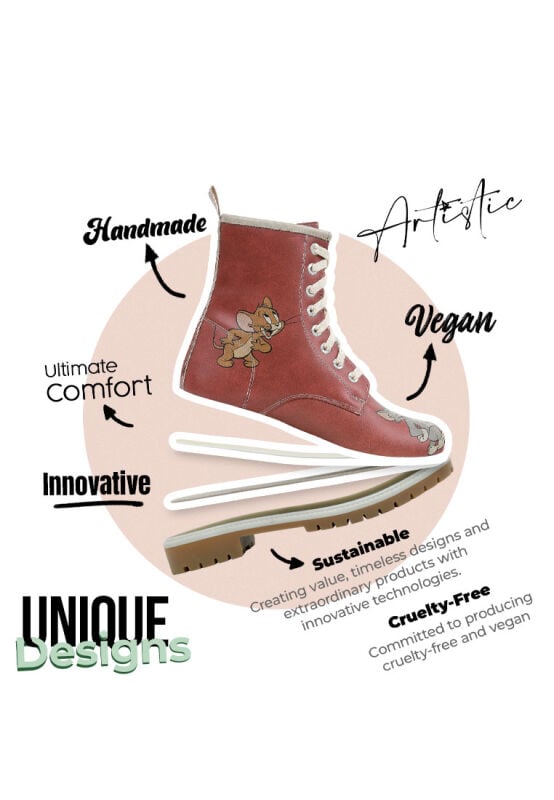 Kadın Vegan Deri Turuncu Uzun Bot – Warner Bros Tom ve Jerry Tasarım, klasik kış stiline tatlı bir dokunuş katacak! Turuncu Long Boots modeli, Tom ve Jerry’nin enerjisiyle buluşarak soğuk günlere renk ve hareket getiriyor. %100 vegan malzemesiyle sürdürülebilir bir moda anlayışı sunarken, uzun formu ve desen detaylarıyla stiline ikonik bir duruş kazandırıyor. Kış gardırobuna özgün bir parça eklemek isteyenler ya da unutulmaz bir hediye ayakkabı arayanlar için ideal bir tercih. Adımlarını sıradanlıktan uzaklaştıran bu tasarım, seni bekliyor!