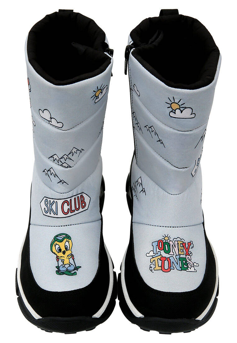 Warner Bros Looney Tunes Ski Club Tasarım Kadın Vegan Gri Bot, eğlenceli Tweety detaylarını zarif gri tonlarıyla buluşturarak kış stiline enerjik bir dokunuş kazandırır. DOGO’nun sanatı giyilebilir hale getiren özgün tarzını yansıtan bu kadın botu, dayanıklılık ve konforu bir arada sunar. Soğuk havalarda sıcak tutan iç astarıyla fonksiyonel bir kullanım sağlar. Modern çizgileriyle dikkat çeken bu tasarım, şehirde ya da tatilde fark yaratmak isteyenler için idealdir. %100 hayvan dostu üretimiyle etik modayı destekleyen Tweety Ski Club vegan bot, her adımda neşe, sıcaklık ve stil sunar.