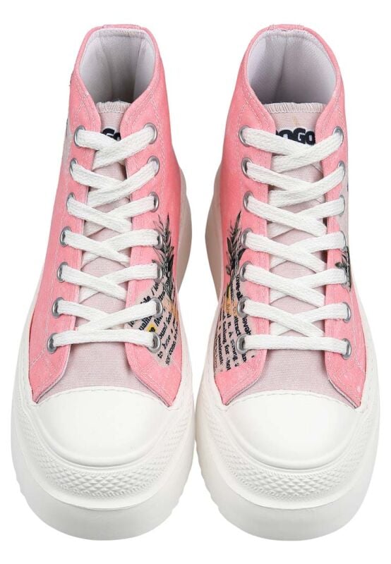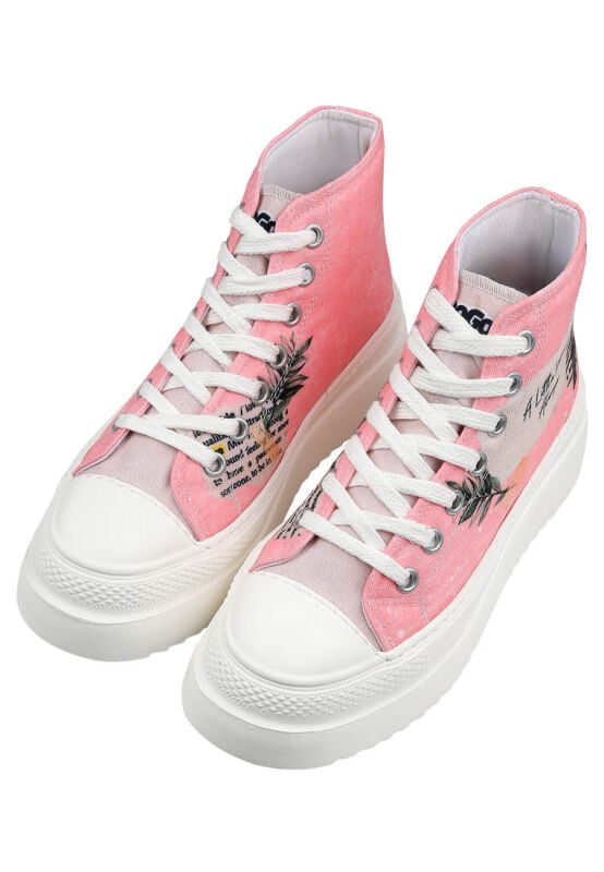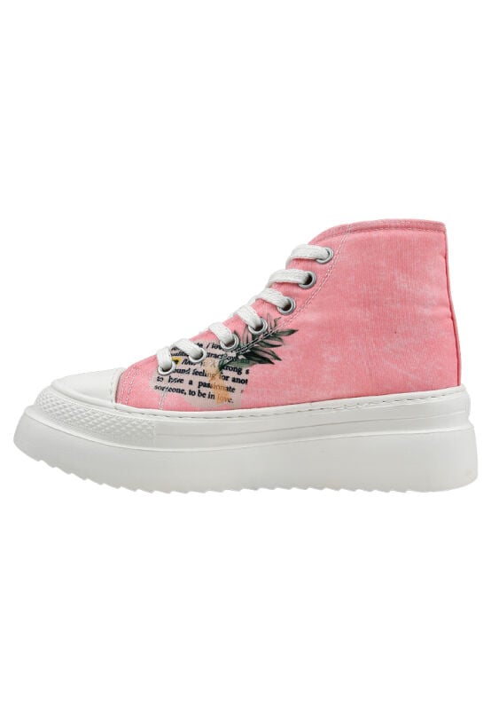 Kadın Vegan Pembe Kalın Taban High Sneakers - A Little Paris Always Tasarım