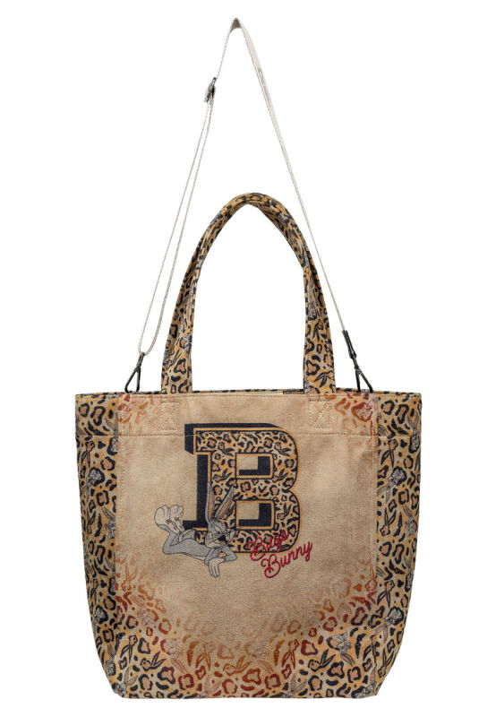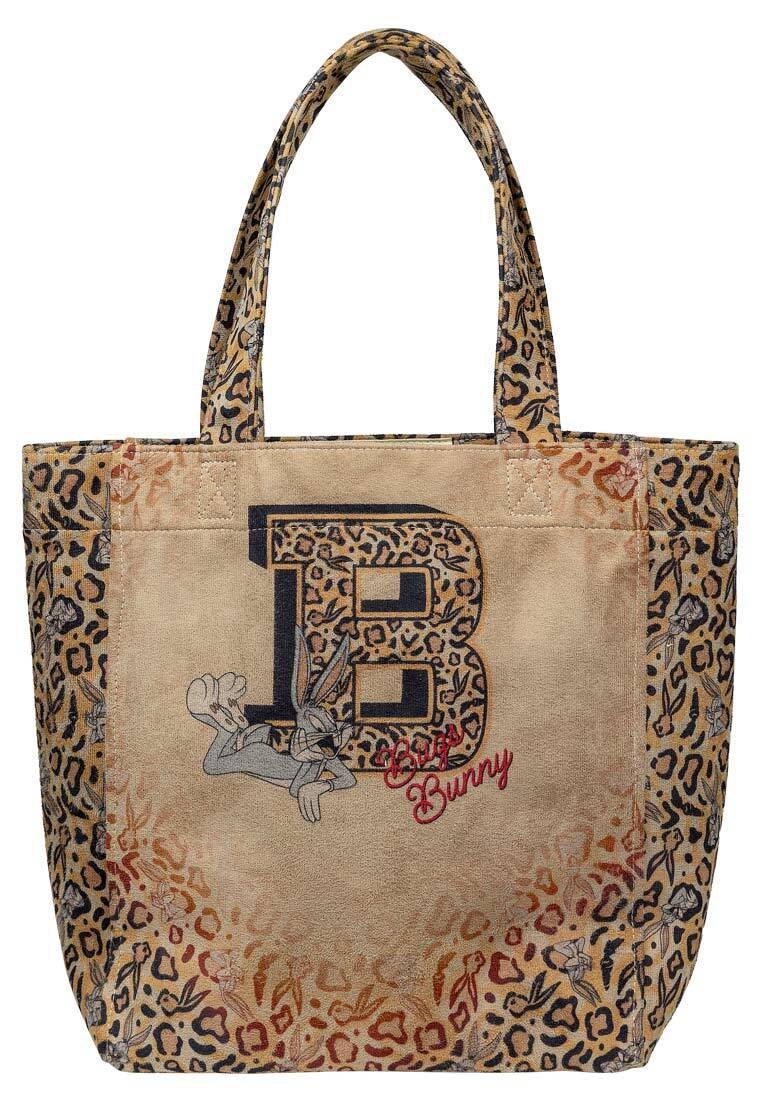 Kadın Vegan Krem Leopar Large Tote Bag - Warner Bros Looney Tunes Leopard Bugs Bunny Tasarım